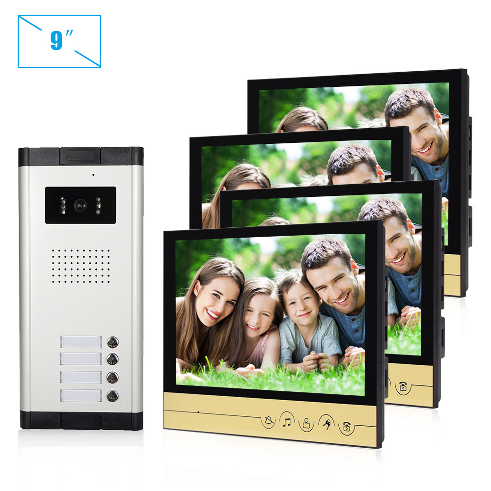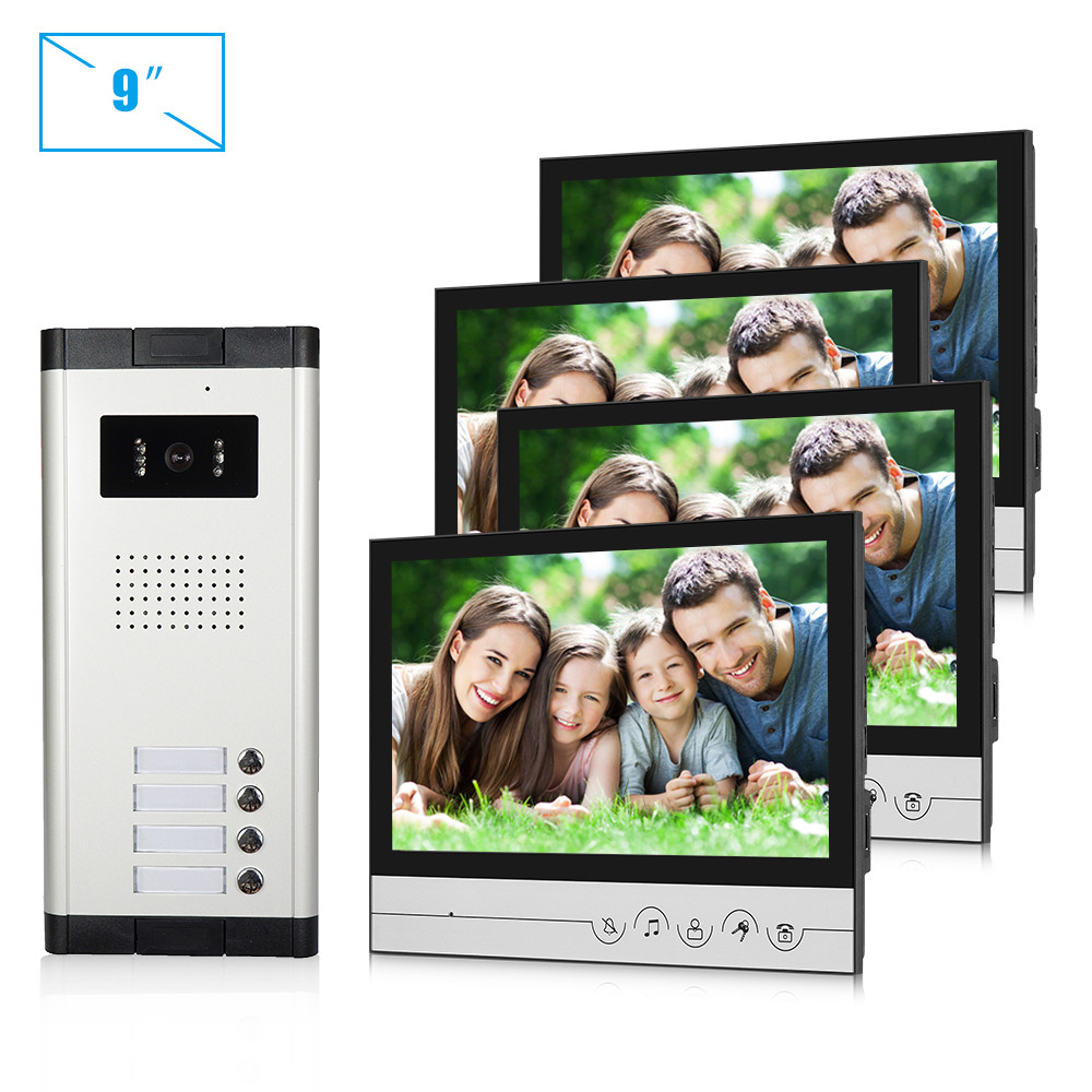 7 ইঞ্চি মনিটর ডোর এন্ট্রি সিস্টেম সহ 4টি অ্যাপার্টমেন্টের জন্য 4ওয়্যার অ্যাপার্টমেন্ট ভিডিও ডোরবেল ইন্টারকম সিস্টেম